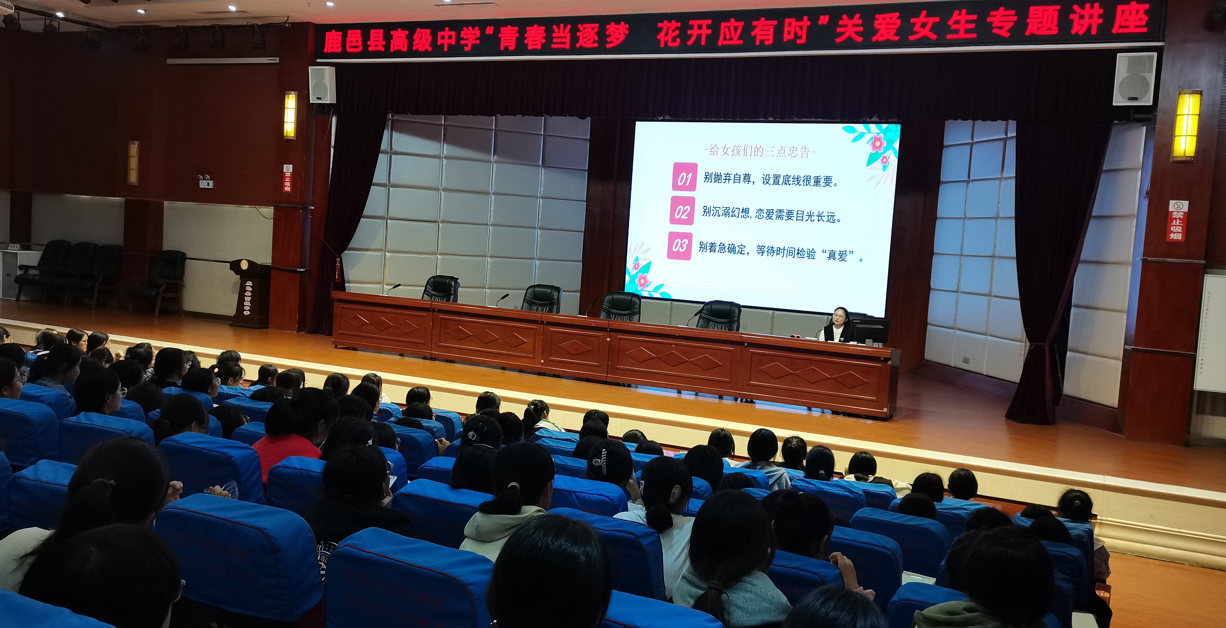 9月26日、27日晚,鹿邑縣高級(jí)中學(xué)舉行兩場以“青春當(dāng)逐夢,花開應(yīng)有時(shí)”為主題的關(guān)愛女生專題講座。講座進(jìn)一步推動(dòng)學(xué)校心理健康教育工作,幫助學(xué)生提高心理健康水平,引導(dǎo)女生正確認(rèn)識(shí)青春期心理及生理上的變化,樹立積極向上的人生觀。此次專題講座由學(xué)校婦委會(huì)主任夏寧主持。