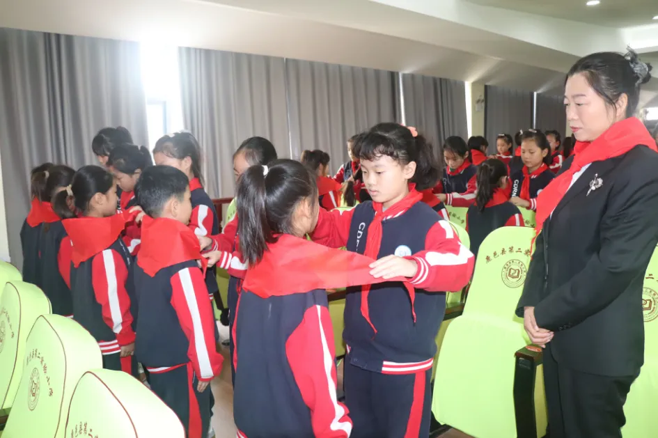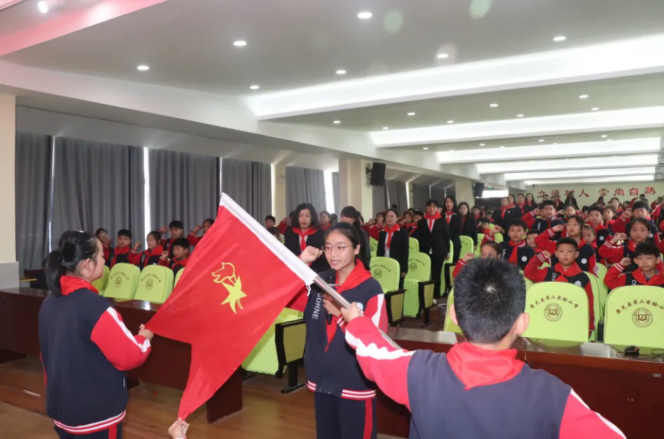 儀式上,該校副校長(zhǎng)肖東旭宣布新隊(duì)員名單,230名同學(xué)加入中國(guó)少年先鋒隊(duì),成為一名光榮的少先隊(duì)員。緊接著,四年級(jí)優(yōu)秀隊(duì)員代表莊重地為新隊(duì)員代表系上鮮艷的紅領(lǐng)巾。在大隊(duì)長(zhǎng)的帶領(lǐng)下,全體隊(duì)員在隊(duì)旗下莊嚴(yán)宣誓。少先大隊(duì)委員熱烈歡迎新隊(duì)員加入。