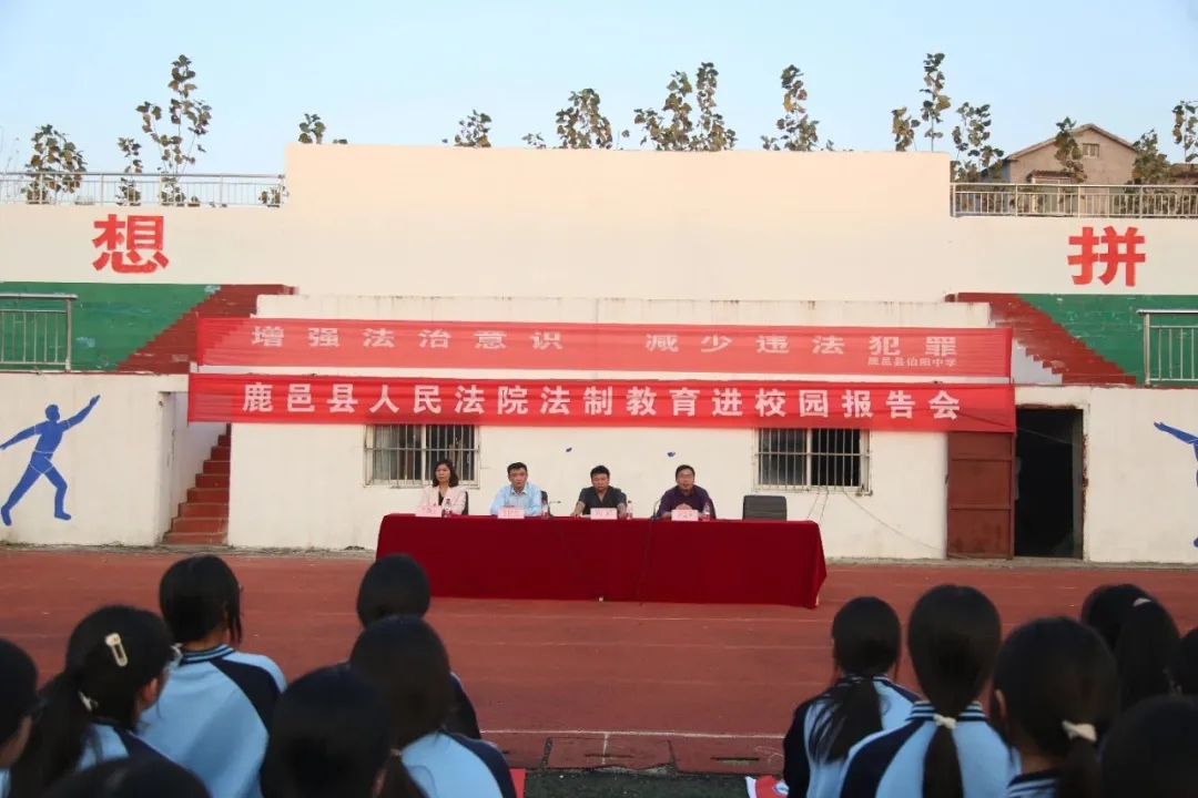 為深入推進(jìn)法治進(jìn)校園活動開展,努力營造校園學(xué)法、懂法、守法的良好氛圍,提高廣大師生的法律素質(zhì)和法制意識,全力構(gòu)建和諧文明校園,10月15日,鹿邑縣伯陽中學(xué)舉行了校園法治教育報(bào)告會。校長王國立、黨支部書記王金利與初中部全體師生參加報(bào)告會。