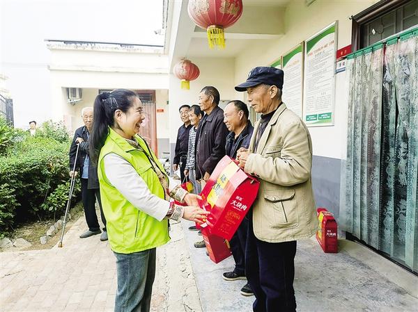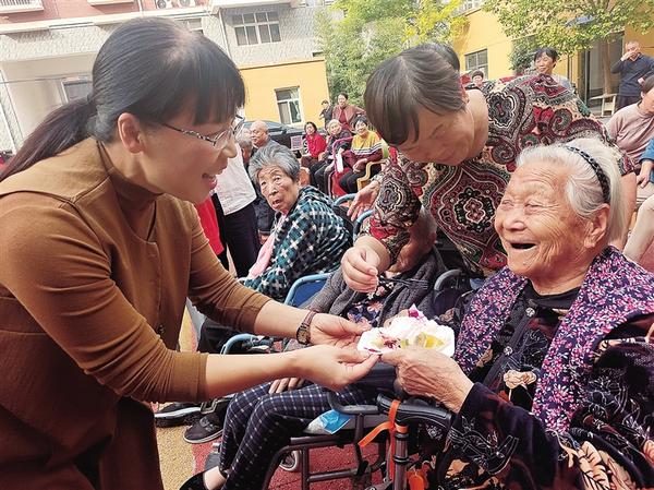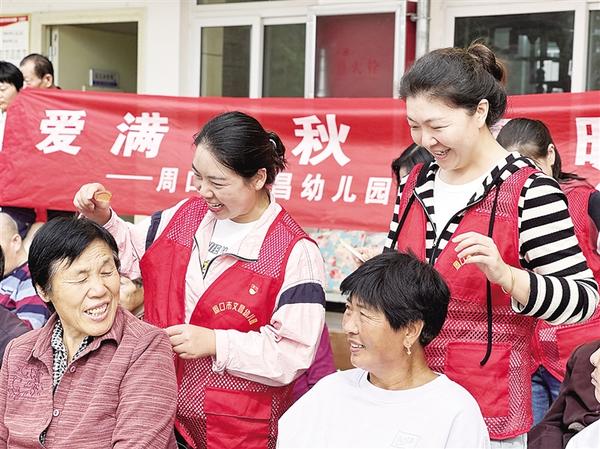 10月10日上午,周口市文昌幼兒園黨支部30余名黨員志愿者來到川匯區(qū)城南街道綜合養(yǎng)老中心,開展“愛滿金秋 情暖重陽”志愿服務(wù)活動(dòng)。志愿者向老人送去慰問品,并表達(dá)對(duì)老年人的美好祝福。