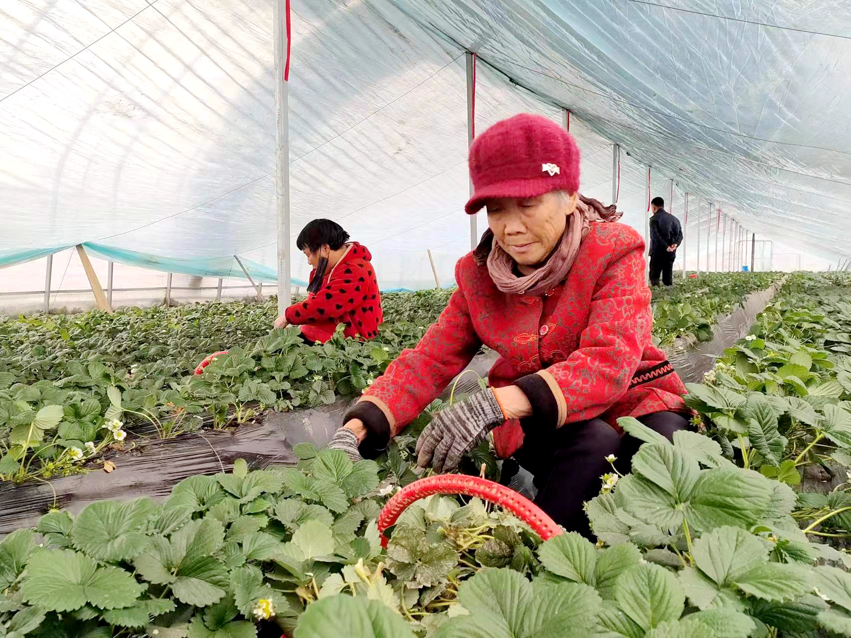 在田廣水的草莓采摘園,一股清香撲鼻而來。綠油油的草莓葉下,一顆顆鮮紅欲滴的草莓長勢喜人,十分誘人。這里的20多畝草莓已經(jīng)開始結(jié)果成熟上市。“初冬的水果品種本來很少,我們大棚種植的‘紅顏’草莓香甜、肉厚、口感好,大人孩子都很喜歡吃?!碧飶V水說,草莓園成熟季雇用工人近30人,全部來自村里的留守婦女、老人及脫貧監(jiān)測戶。