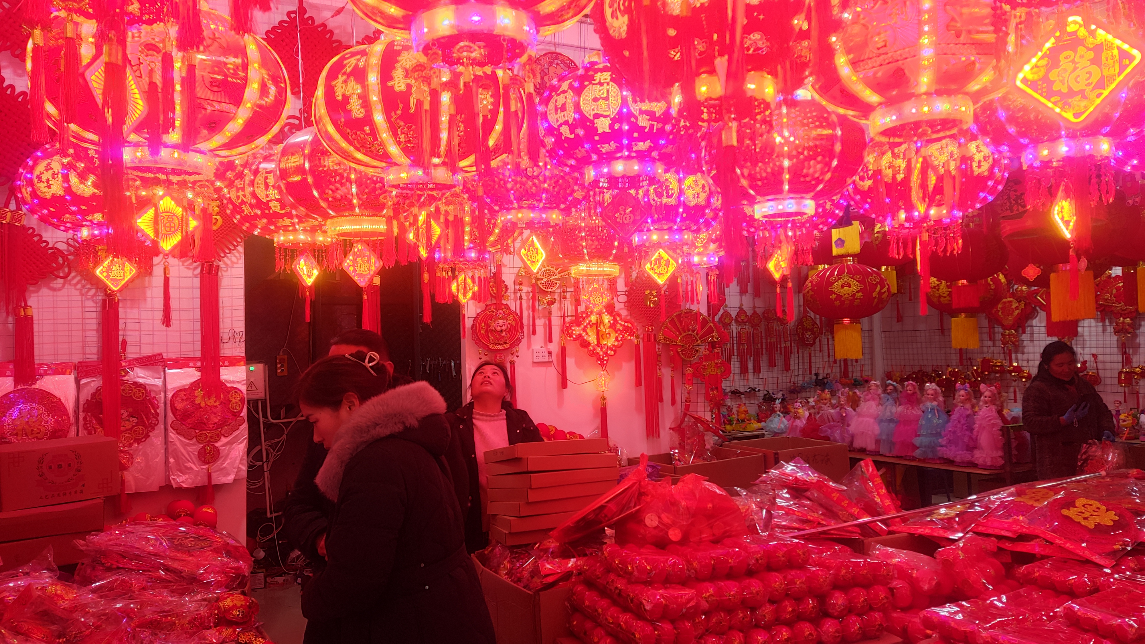 在華耀城一家燈籠店,店內(nèi)五名工作人員忙得不可開(kāi)交,有的忙著幫顧客挑選燈籠,有的登記顧客訂單,有的打包準(zhǔn)備發(fā)貨。“客人多了,生意好了,今年比過(guò)去幾年更有年味?!崩习逑蛴浾呓榻B,現(xiàn)在是一年中生意最忙的時(shí)候,顧客都喜歡帶有龍?jiān)氐臒艋\,其中小孩子更喜歡玩具型燈籠,大人則更偏愛(ài)傳統(tǒng)造型燈籠。