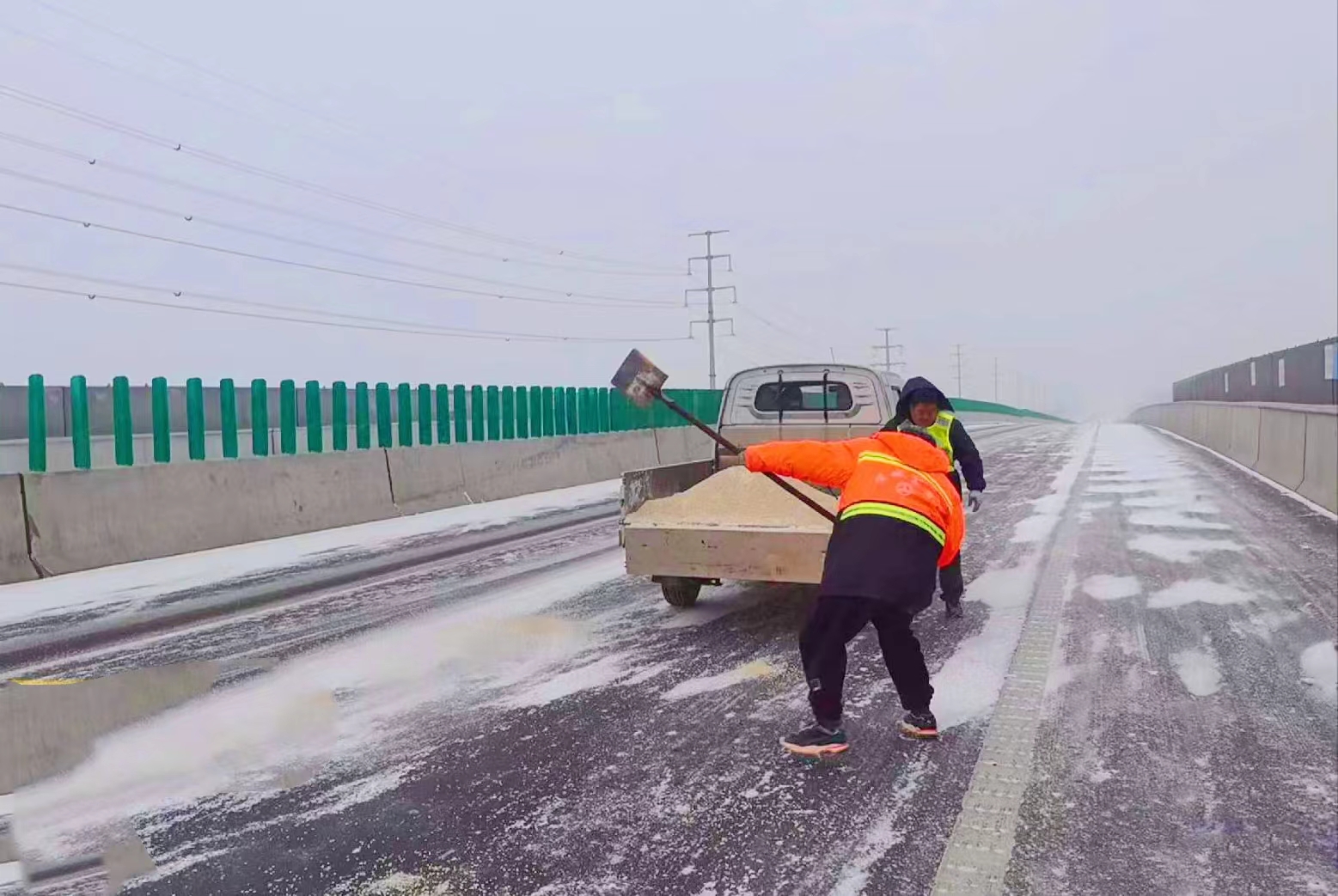 為有效應(yīng)對(duì)本輪大范圍雨雪冰凍天氣,保障普通公路安全暢通,周口市公路事業(yè)發(fā)展中心嚴(yán)格按照省市有關(guān)應(yīng)對(duì)低溫雨雪冰凍天氣的工作要求,進(jìn)一步細(xì)化工作方案,夯實(shí)工作責(zé)任,層層抓好落實(shí)。該中心組織“共產(chǎn)黨員應(yīng)急搶險(xiǎn)突擊隊(duì)”趕赴一線(xiàn),讓黨旗飄揚(yáng)在除雪融冰應(yīng)急搶險(xiǎn)現(xiàn)場(chǎng),吹響“我們是黨員突擊隊(duì),雪情就是命令,保通就是責(zé)任”的集結(jié)號(hào),全體參戰(zhàn)人員統(tǒng)一調(diào)度,分工協(xié)作,持續(xù)奮戰(zhàn)。