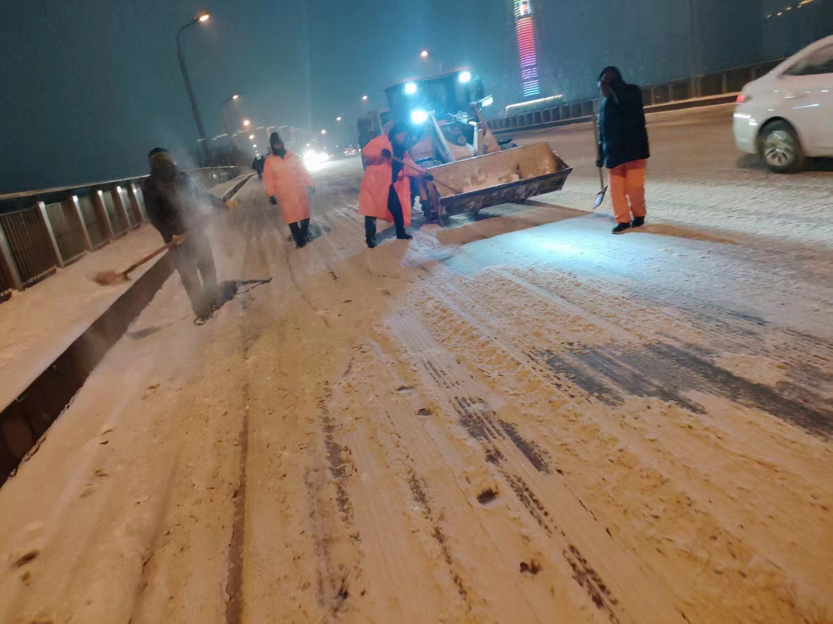 2月2日下午,為降低夜間低溫可能造成的路面結(jié)冰影響,市城管局組織人員加強(qiáng)對城區(qū)主要道路、橋梁等重點(diǎn)區(qū)域巡查,及時了解收集易結(jié)冰路段情況,各區(qū)城管組織人員車輛分班作業(yè),采取人車齊上陣,晝夜不停清理道路積雪。同時組織人工保潔力量,分布在城區(qū)各條道路上,分工協(xié)作,有條不紊,撒布融雪劑,為群眾出行安全保駕護(hù)航。