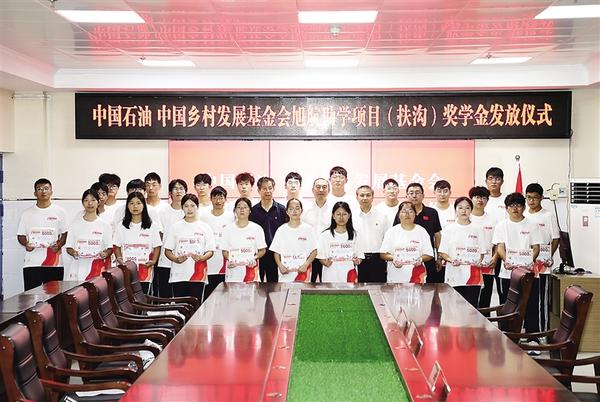 8月12日,中國石油 中國鄉(xiāng)村發(fā)展基金會(huì)旭航助學(xué)項(xiàng)目獎(jiǎng)學(xué)金發(fā)放儀式在扶溝縣高級(jí)中學(xué)舉行?;顒?dòng)現(xiàn)場,30名品學(xué)兼優(yōu)的學(xué)子共獲15萬元愛心獎(jiǎng)學(xué)金。旭航助學(xué)項(xiàng)目是中國石油與中國鄉(xiāng)村發(fā)展基金會(huì)攜手發(fā)起的專注于教育領(lǐng)域的公益項(xiàng)目,旨在為家庭困難的高中生提供助學(xué)金和獎(jiǎng)學(xué)金,幫助他們完成學(xué)業(yè),實(shí)現(xiàn)求學(xué)夢想。圖為活動(dòng)現(xiàn)場。記者 金月全