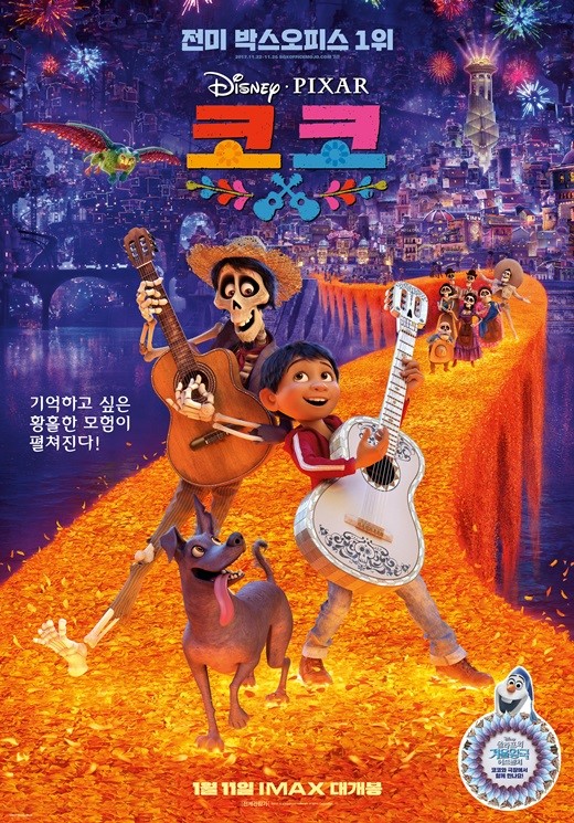 美國(guó)動(dòng)畫(huà)電影《尋夢(mèng)環(huán)游記》昨天在韓國(guó)上映,創(chuàng)下了超過(guò)10萬(wàn)人的首映觀影人數(shù)?!?a href="http://m.ahjspx.com/content/2018-01/15/content_802168.htm" target="_blank" >[詳細(xì)]