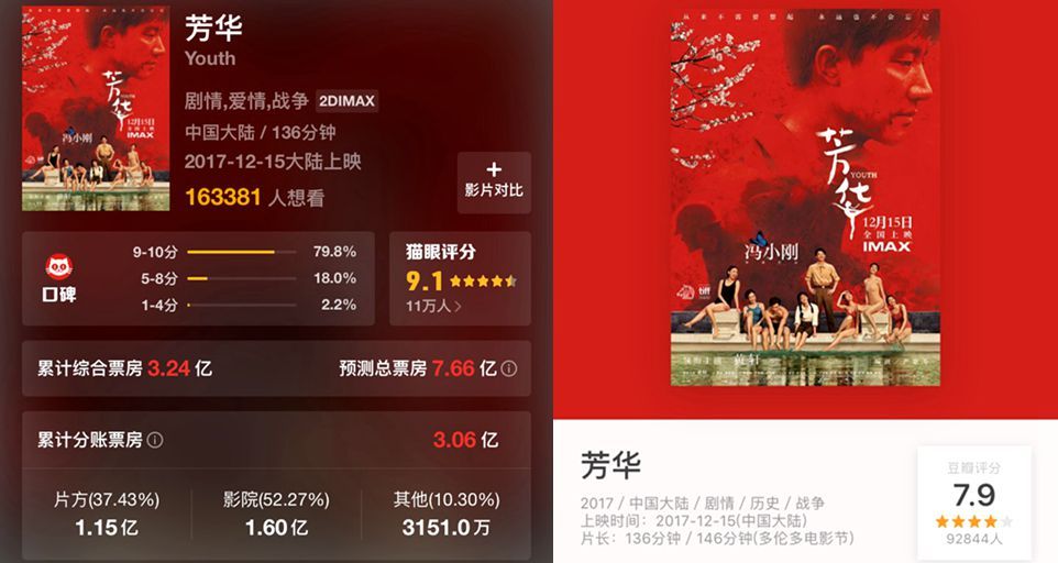 國慶檔因為片子太多,除了《羞羞的鐵拳》遙遙領先外,口碑不錯的《英倫對決》、《追龍》、《縫紉機樂隊》的票房都遭到了擠壓。熱度很高的《空天獵》也一樣。最終,這五部電影的票房分別是20.07億、5.38億、5.75億、4.57億、3.18億?!?a href="http://m.ahjspx.com/content/2017-12/18/content_604326.htm" target="_blank" >[詳細]