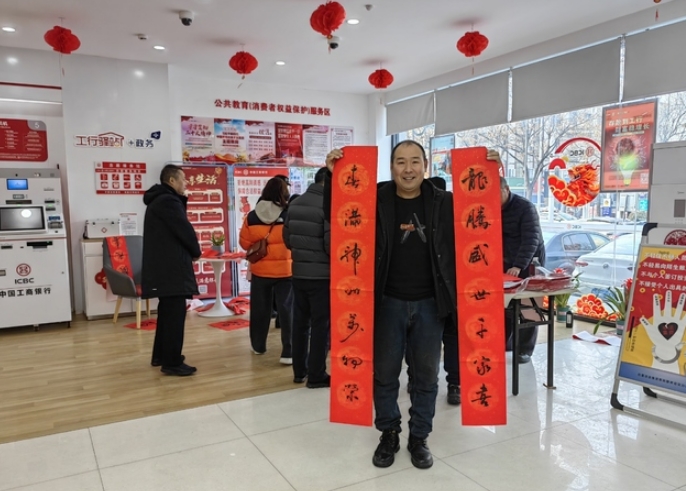 新春佳節(jié)來臨之際,工行周口分行傳承中華民族習俗,積極營造歡樂祥和吉慶的節(jié)日氛圍,精心組織本行書法家和書法愛好者在營業(yè)網(wǎng)點開展“寫春聯(lián)送福字賀新年”活動,為廣大群眾送上新春美好祝福。