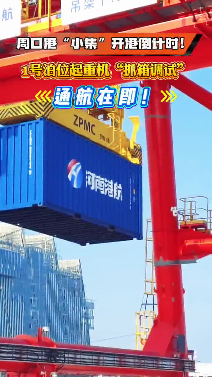 周口港“小集”開港倒計(jì)時(shí)!1號泊位起重機(jī)“抓箱調(diào)試”,通航在即!