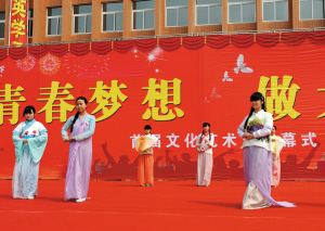 該校把特色教育作為發(fā)展的名片,推出“一班一品一特色”活動(dòng)。學(xué)校建立以班級(jí)為單位的社團(tuán)組織,并細(xì)分為體育類(lèi)、舞蹈類(lèi)、樂(lè)器類(lèi)、美術(shù)類(lèi)四大類(lèi)別,共70個(gè)社團(tuán)。比如:美工社團(tuán)制作漢服進(jìn)行表演,每一次都讓在場(chǎng)的觀(guān)眾潸然淚下,為自己是一個(gè)漢唐中華子孫而驕傲,為著漢唐服裝而自豪。學(xué)校出版了《求真大課堂》《走在成長(zhǎng)的路上》《花季無(wú)悔》《中學(xué)生科技創(chuàng)作》《班主任德育思想錄》《國(guó)學(xué)之蘊(yùn)》《家和萬(wàn)事興》《共創(chuàng)一個(gè)夢(mèng) 和韻文昌之家校共建》《“文昌杯”文明我先行 共筑一個(gè)夢(mèng)》主題征文作文選等校本教材。為豐富校園文化生活,學(xué)校邀請(qǐng)中國(guó)政法大學(xué)的霍登科,歷史文化學(xué)者王少清,青少年心理教育專(zhuān)家張海選、萬(wàn)禮彬,周口市中心醫(yī)院婦產(chǎn)科主任楊莉,河南國(guó)學(xué)院的施柳貞、王福琪、楊茹梅以及國(guó)內(nèi)外優(yōu)秀大學(xué)生對(duì)學(xué)生進(jìn)行國(guó)學(xué)誦讀和教育、演講比賽、法制教育、夢(mèng)想目標(biāo)教育、青春期心理和生理教育等活動(dòng)。在該校首屆“做大成教育 展青春夢(mèng)想”文化藝術(shù)節(jié)活動(dòng)中,有一項(xiàng)活動(dòng)叫珍藏十年“心愿瓶”,當(dāng)滿(mǎn)載學(xué)生夢(mèng)想的心愿瓶準(zhǔn)備珍藏時(shí),晴天出現(xiàn)了彩虹,讓在場(chǎng)的領(lǐng)導(dǎo)、家長(zhǎng)、學(xué)生很驚嘆,說(shuō)文昌中學(xué)的學(xué)生目標(biāo)遠(yuǎn)大,定有大才出現(xiàn)。這些有意義的活動(dòng)對(duì)廣大未成年人的身心健康起到了很好的促進(jìn)作用。