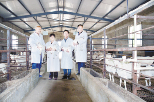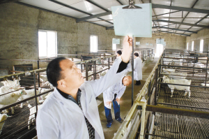 孫振偉原是當(dāng)?shù)刂那嗄昶髽I(yè)家,2008年初被西關(guān)村居民高票選舉為村黨支部書記,憑著對家鄉(xiāng)的強(qiáng)烈責(zé)任感和保護(hù)槐山羊特色品種的使命感,孫振偉帶領(lǐng)西關(guān)村立足本村作為槐山羊傳統(tǒng)養(yǎng)殖區(qū)的優(yōu)勢,于2010年成立沈丘縣槐山羊養(yǎng)殖發(fā)展有限公司,在省畜牧展交易會上,與鄭州鄭源公司合作,共同簽約了投資6000萬元建設(shè)槐山羊原種保護(hù)、繁育、深加工項目。同時與華中農(nóng)大建立技術(shù)合作關(guān)系,投資800萬元建成“槐山羊原種保護(hù)和繁育中心”,規(guī)劃設(shè)計了化驗(yàn)室、消毒室、提純復(fù)壯室、品種基因室等配套規(guī)范設(shè)施,不僅為國家級優(yōu)良品種槐山羊的保種提純工作提供了科研平臺和寶貴數(shù)據(jù)庫,“槐山羊提純復(fù)壯良種繁育技術(shù)研究與應(yīng)用”成果還獲得2013年度周口市科技進(jìn)步一等獎。經(jīng)過提純復(fù)壯,目前中心存欄特征明顯的槐山羊母羊860只、種公羊36只,在此基礎(chǔ)上,計劃建成占地100畝的槐山羊養(yǎng)殖小區(qū),槐山羊板皮、肉制品等深加工項目都已經(jīng)開始實(shí)施。 “這些是經(jīng)過第五輪提純復(fù)壯繁育的槐山羊,目前可以說是最純種的槐山羊了?!睂O振偉指著一批剛出生的小羊向我們介紹。