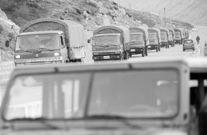 5月22日,西藏軍區(qū)日喀則軍分區(qū)運(yùn)輸車隊(duì)幫助群眾轉(zhuǎn)移財(cái)產(chǎn)。新華社發(fā)