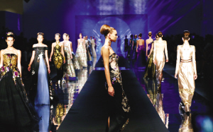 7月13日,在意大利米蘭世博會(huì)南京周閉幕時(shí)裝秀上,模特展示中國(guó)設(shè)計(jì)師勞倫斯·許的作品。當(dāng)日,中國(guó)高級(jí)定制設(shè)計(jì)師勞倫斯·許的云錦時(shí)裝秀在意大利米蘭世博會(huì)南京周上演,展示了37套由云錦面料制成的高級(jí)定制禮服。