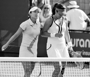 鄭潔和詹詠然今年2月開始搭檔打雙打。昨天面對兩位身高都超過1.80米的對手,她倆以穩(wěn)健多變的底線球和積極上網(wǎng)牢牢掌握著場上主動權,勝得十分輕松。
