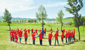 第二天:8:00到達(dá)北京,早餐后赴豐寧壩上草原,開營(yíng)儀式;草原上拓展活動(dòng):快樂“拍拍拍”、“親手觀音”、“向前向前”、“排山倒?!钡扔螒?;晚上活動(dòng)分享,書寫親情傳真。